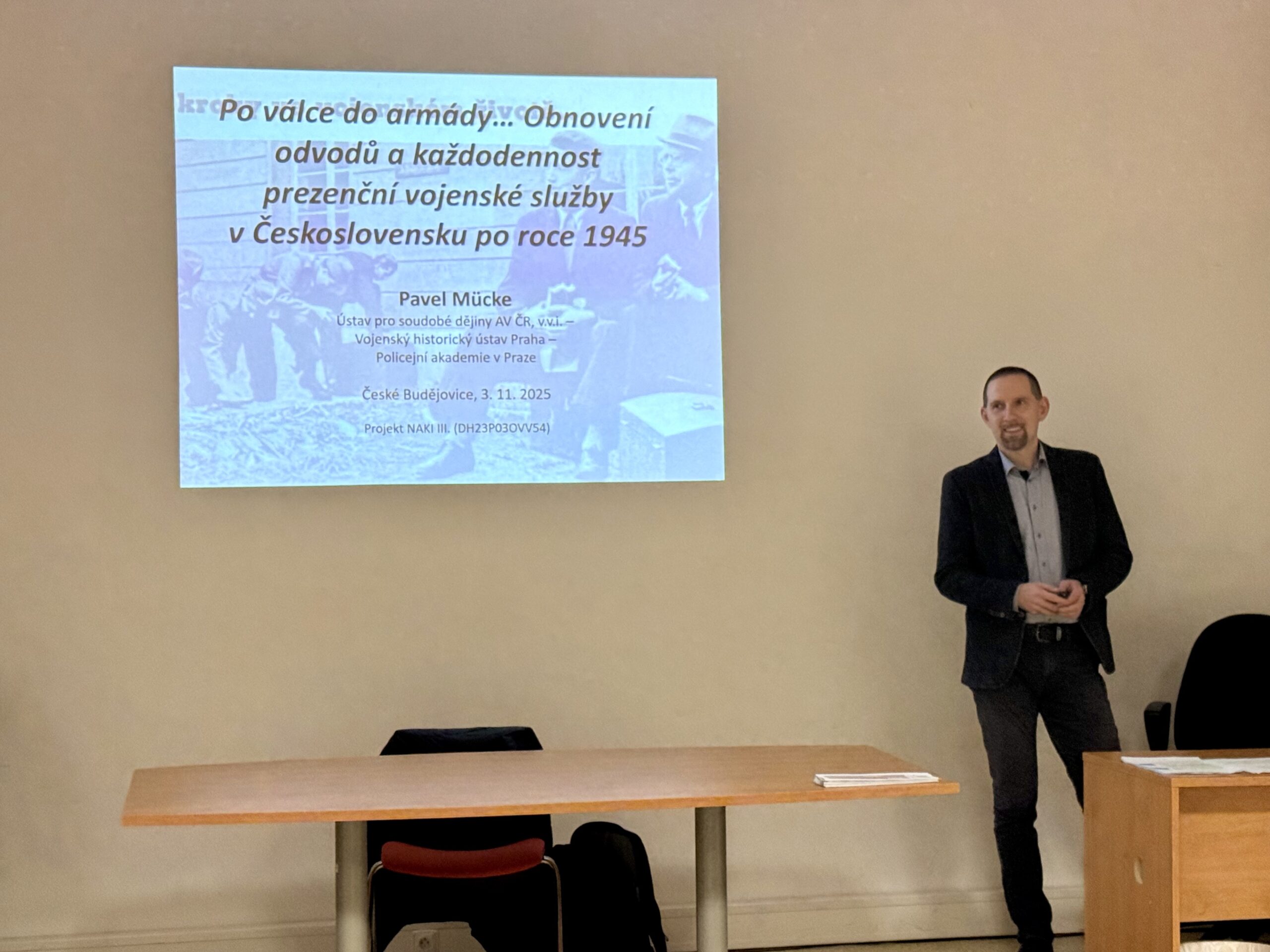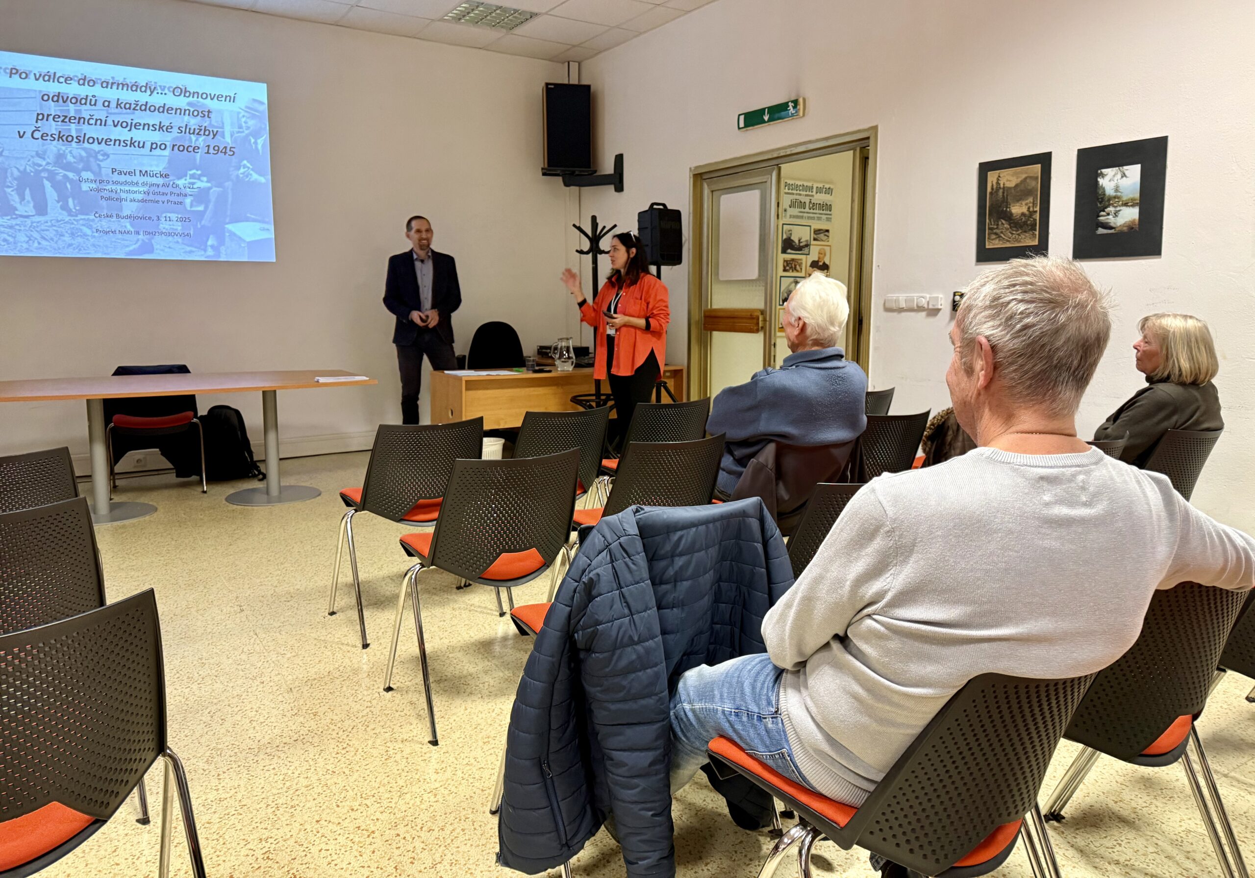 Výstavu je možné navštívit zdarma během otevírací doby ve vestibulu knihovny až do 31. 12. 2025. Vernisáž uvedla přednáška člena našeho týmu doc. Pavla Mückeho o obnovení povinných odvodů v Československu po roce 1945.